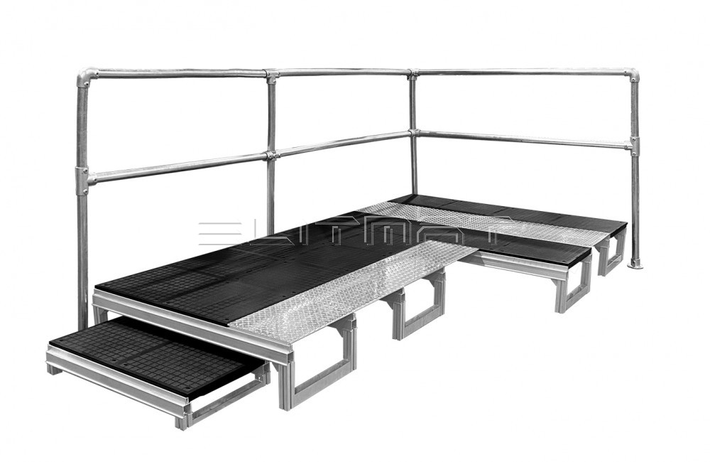 Napomáha pracovať v optimálnej výške, čím uľahčuje prácu zamestnancom a znižuje riziko úrazov. Ergonomické plošiny sú plne prispôsobiteľné pracovisku, tri základné výšky a modulárny spôsob zabezpečuje pokrytie pracovnej zóny zamestnanca v štandardných aj zákazníckych rozmeroch.